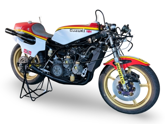 Dopo l'esordio nel Mondiale 500 avvenuto nel 1973, Suzuki si presentò ai nastri di partenza del campionato 1974 con la nuovissima RG500, che fu aggiornata e messa in pista sino al 1980, anno in cui la sua eredità venne raccolta dalla RG Gamma 500, moto con cui Lucchinelli e Uncini si laurearono campioni del mondo 500 nelle stagioni 1981 e 1982. La prima vittoria per la creatura di Hamamatsu arrivò nel GP di Assen del 1975 proprio per mano di Sheene, anch'egli al primo successo della carriera in quell'occasione. Tuttavia fu il 1976 l'anno della definitiva consacrazione per questa moto, per Suzuki Racing e per lo stesso Barry Sheene, che in quella stagione trionfò in 5 delle 10 gare in calendario, chiudendo i conti per il titolo con tre Gran Premi di anticipo. Il bis mondiale non tardò ad arrivare e nel 1977 nove gare su 11 videro trionfare piloti in sella alla RG500, di cui 6 a firma di Sheene. Quello del 1977 fu l'ultimo titolo per il pilota londinese, conquistato proprio sulla moto che sarà all'asta a fine aprile; dall'anno successivo a prendersi la scena del Mondiale 500 fu infatti un debuttante statunitense destinato a entrare nella leggenda del motociclismo, alla guida non più di una Suzuki ma di una Yamaha: Kenny Roberts.