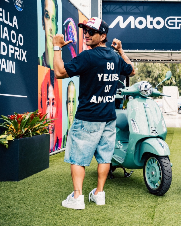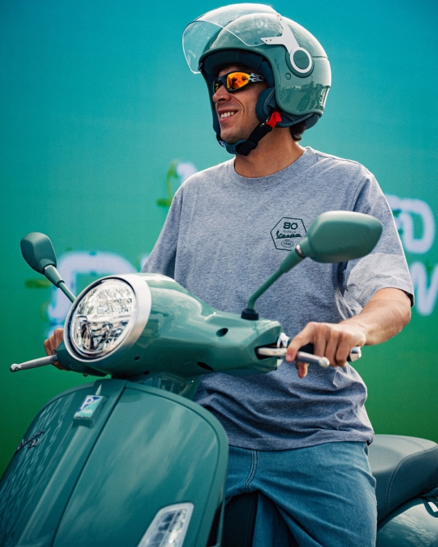 Il Gran Premio di Spagna, quarto appuntamento stagionale del campionato del mondo di MotoGP, arriva proprio nel pieno delle celebrazioni per gli ottant'anni della Vespa. Il brevetto del celebre scooter, infatti, venne depositato a Firenze, presso l'ufficio competente, il 23 aprile 1946. Da allora la storia italiana di successo è proseguita fino ai giorni nostri, con una gamma impreziosita anche da alcune serie speciali (anche in Italia, oltre alle versioni Gts, Gtv, Primavera e Sprint, è disponibile anche la Vespa 946 Horse realizzata in edizione limitata dedicata al Capodanno cinese e all'anno del cavallo). Bezzecchi, che da Aprilia ha già ricevuto in dono un'Ape (per il successo ottenuto a in Thailandia) e una Vespa (modellino), e Martin hanno invece optato per l'allestimento celebrativo 80th che si caratterizza principalmente per la storica colorazione verde pastello e per alcuni dettagli di stile ispirati al passato.